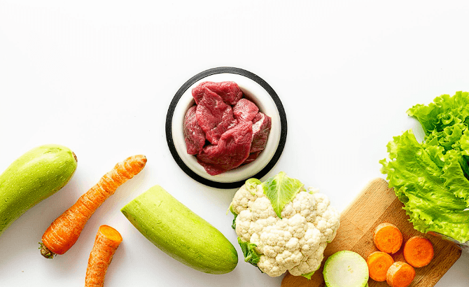 Натуральный корм хранится замороженным: перед подачей размораживайте в холодной воде, потом доводите до комнатной температуры. Мясо должно оставаться сырым — термообработка разрушает ферменты, которые нужны животному. Для жиров добавляйте льняные или тыквенные семечки, для углеводов — немного риса, овсянки и паровых овощей.